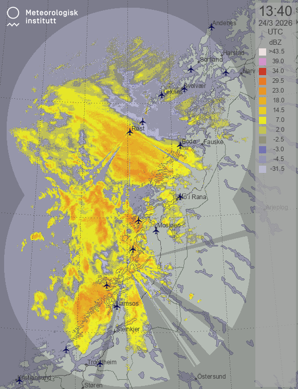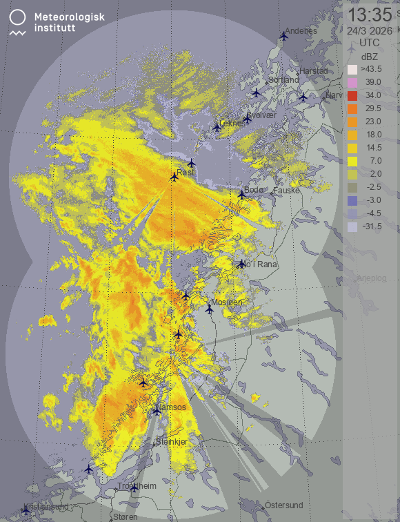 Available products for area "nordland" with data type "reflectivity"