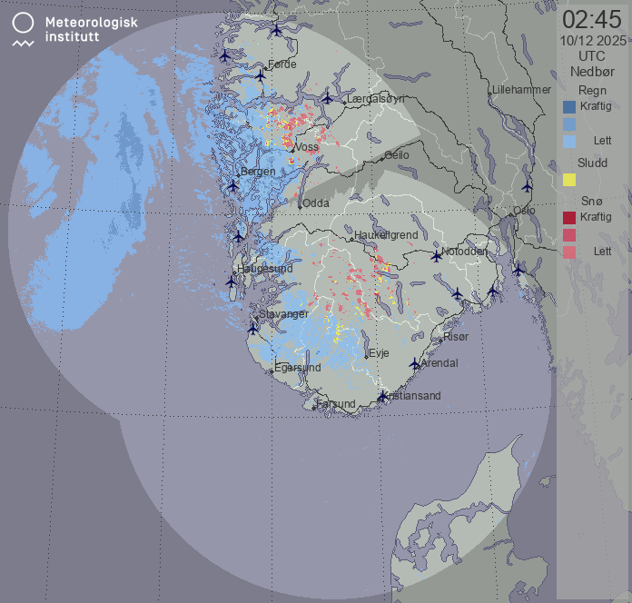 Available products for area "sorvestnorge" with data type "preciptype"