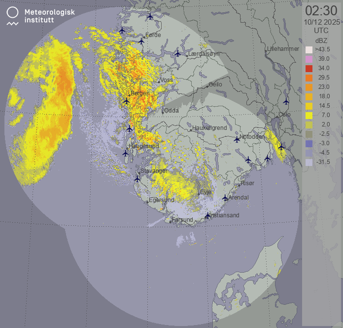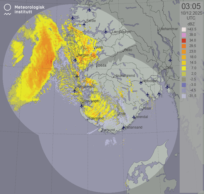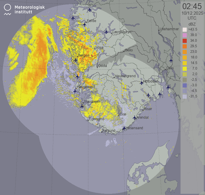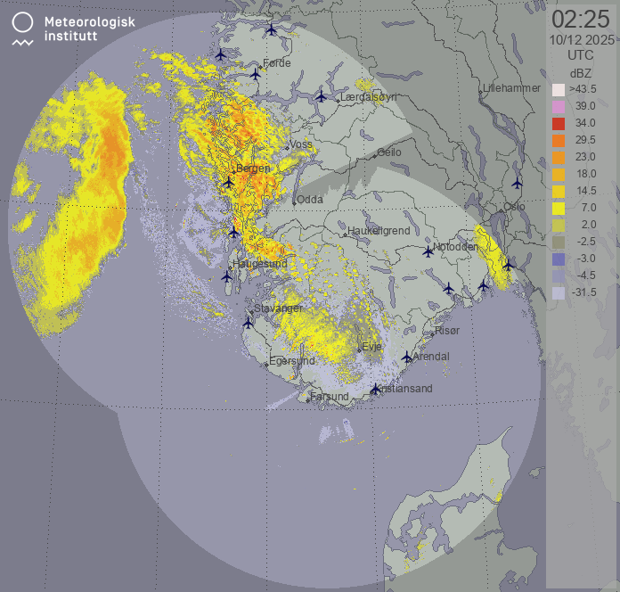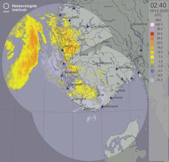 Available products for area "sorvestnorge" with data type "reflectivity"